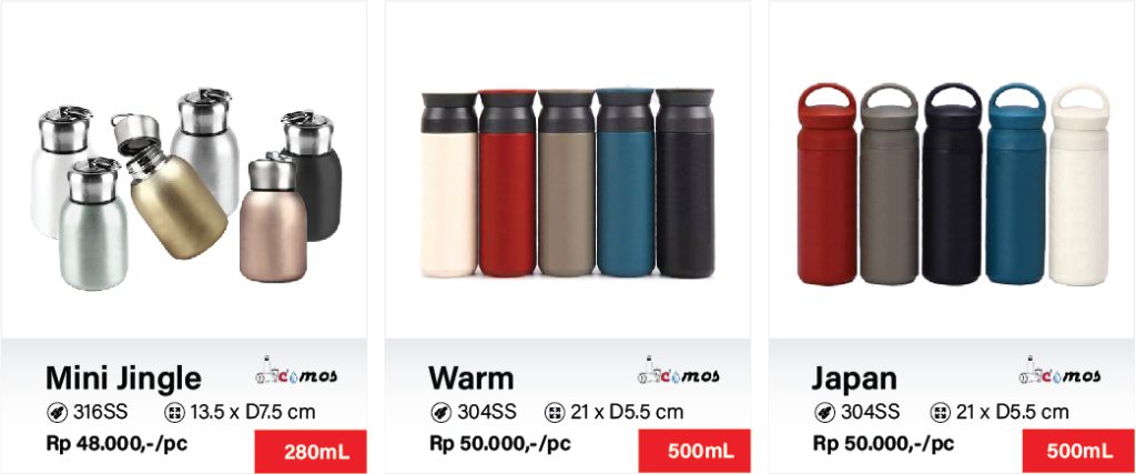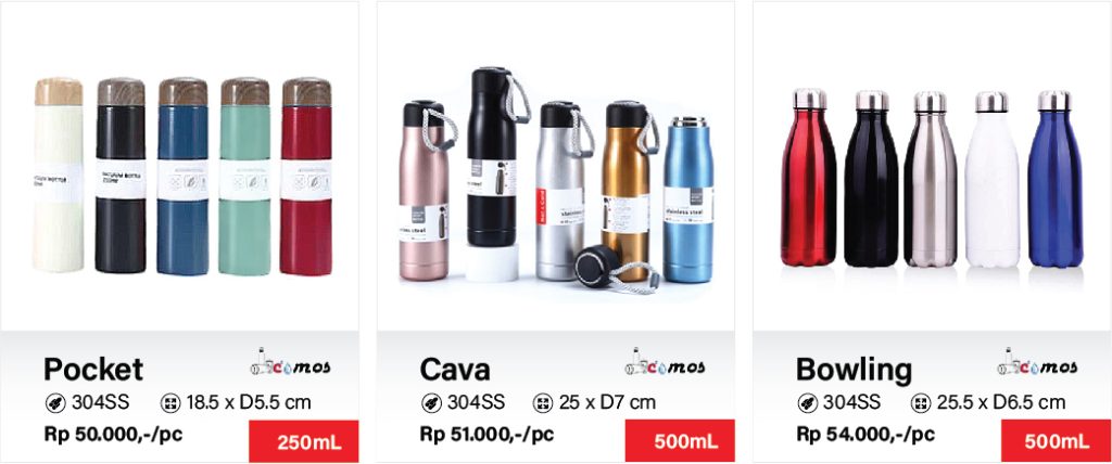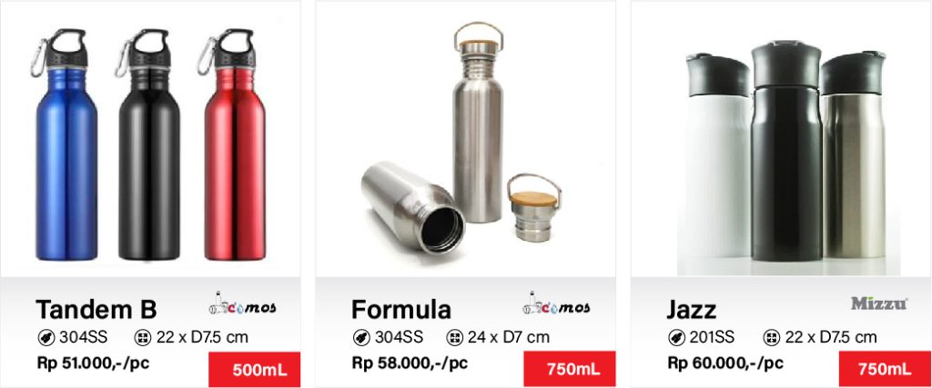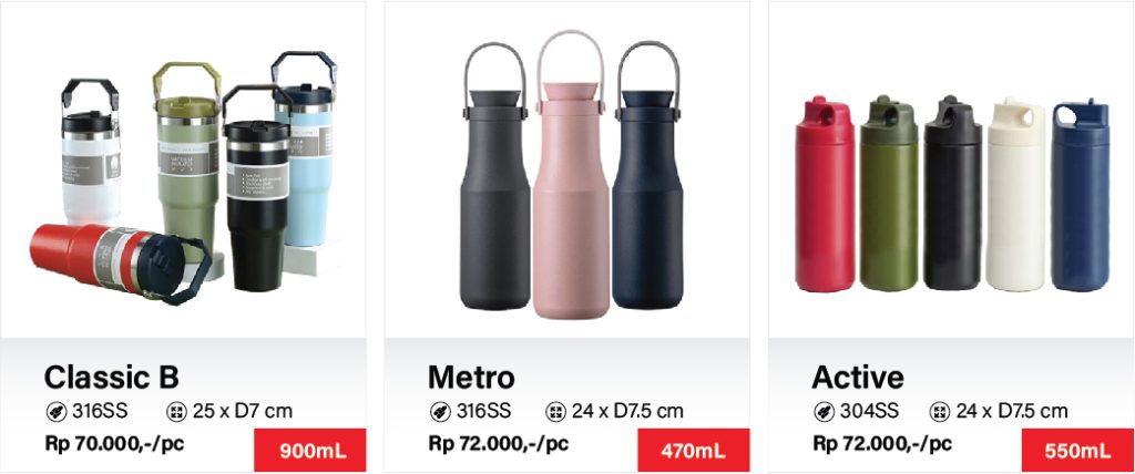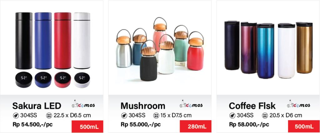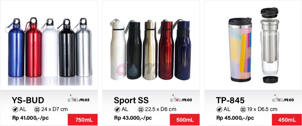 Botol tumbler & termos custom logo merupakan alternatif sarana promosi, merchandise ataupun souvenir ulang tahun yang cantik dan berguna bagi penerimanya lantaran ramah lingkungan. Nyatanya, produk promosi satu ini juga bisa menjadi bentuk apresiasi kepada pelanggan dan karyawan.