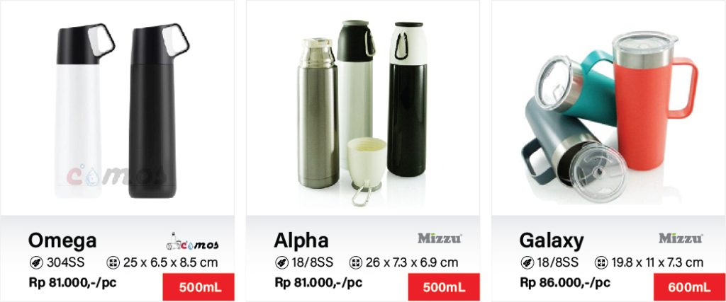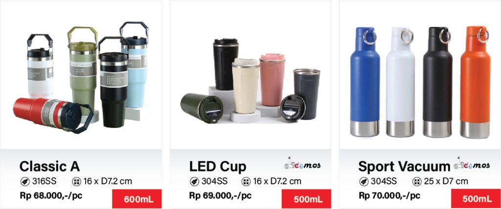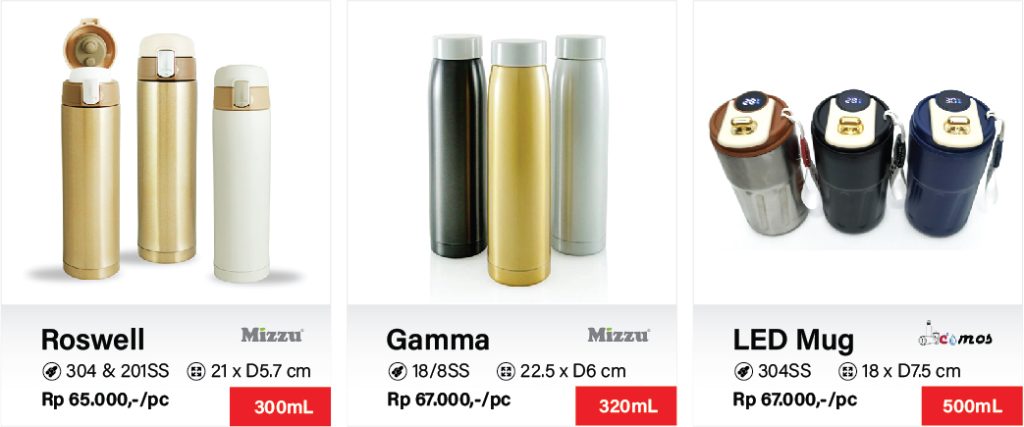 Berikut beberapa merk tumbler termos corporate impor pilihan berikut yang ILY ACTIVA Souvenir & Tumbler Surabaya rekomendasikan : Chielo, Mizzu dan Comos.
